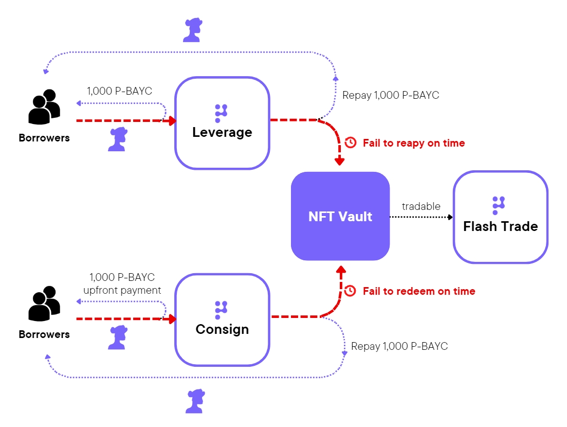 The consigned NFT will also be liquidated if the seller does not pay back on time, and it will be directly sent to "NFT Vault" for trading.